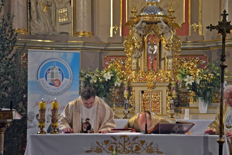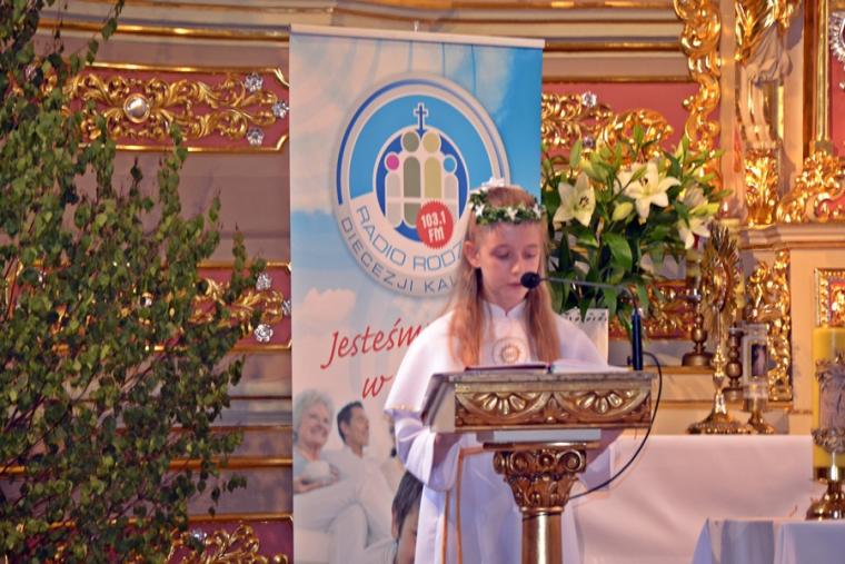 Bogata w wydarzenia była w mikstackiej parafii niedziela 16 czerwca . W tym dniu w całym Kościele obchodzona była uroczystość Trójcy Przenajświętszej. Dla naszej wspólnoty był to dzień wyjątkowy, dzień odpustu, bo od wieków parafii patronuje Trójca Święta. Uroczystej sumie odpustowej odprawionej o godz. 11:00 przewodniczył w tym roku ks. Andrzej Wojciechowski, proboszcz parafii pw. Świętego Michała Archanioła w Czempiniu. W czasie sumy odpustowej zakończenie „ Białego Tygodnia” przeżywały dzieci, które w uroczystość Zesłania Ducha Świętego pierwszy raz w sposób pełny uczestniczyły we mszy świętej, natomiast uczniowie klasy czwartej wspominali rocznicę swojej I Komunii Świętej. Wraz z księdzem Andrzejem Wojciechowskim, stanęli ks. kan. Krzysztof Ordziniak oraz ks. kan. Zbigniew Mielcarek, który czterdzieści dwa lata temu w uroczystość Trójcy Świętej sprawował w mikstackiej farze mszę świętą prymicyjną. Na początku mszy świętej ksiądz proboszcz przedstawił przewodniczącego koncelebrze księdza Andrzeja. Podkreślił, że jest następcą ks. Franciszka Ksawerego Ruszczyńskiego w Czempiniu, w parafii do której posłany został budowniczy naszej fary w dwa lata po jej konsekracji. W Czempiniu w parafii pw. Świętego Michała Archanioła sprawował posługę w latach 1920-1961. Ks. kan. Krzysztof zaznaczył, że ks. Andrzej Wojciechowski jest kolegą kursowym syna naszej parafii ks. Michała, a więc niedawno obchodził 25-lecie kapłaństwa. Homilię podczas uroczystej sumy wygłosił przewodniczący koncelebrze ks. Andrzej. Można w niej wyodrębnić dwie części. W pierwszej kaznodzieja nawiązując do słów Ewangelii zachęcał byśmy dziękowali Bogu za Bożego Ducha, który przypomina nam prawdę. Podkreślił, że ta prawda jest przekazywana od dwóch tysięcy lat, głoszona w naszych parafiach i prowadzi nas do zbawienia. Ks. Andrzej zaakcentował, że w uroczystość Trójcy Przenajświętszej dziękujemy za Boga Ojca, który stworzył świat, za Syna Bożego, który odkupił świat, wybawił nas od śmierci i grzechu, dziękujemy za Ducha Świętego, który nas prowadzi, oświeca nas, byśmy nie zeszli z Bożych dróg. Kaznodzieja nawiązał do medalionu Trójcy Przenajświętszej znajdującego się w kościele pw. Świętego Michała Archanioła w Czempiniu podkreślił, że cała Trójca Święta przedstawiona jest jako wspólne działanie Boga dla naszego zbawienia.
