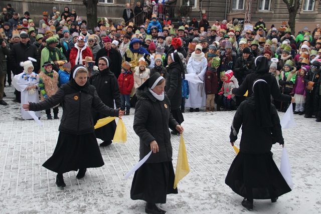 Uczestnicy orszaku otrzymali od organizatorów kolorowe korony. W czasie przemarszu nie brakowało wspólnego śpiewu oraz inscenizacji słowno-muzycznych.