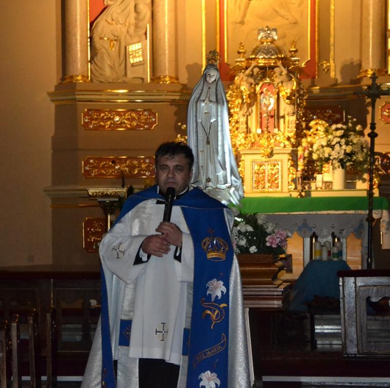 Piękny duchowo był dzień 13 października A.D. 2019 roku. Zbiegło się w nim tyle ważnych wydarzeń. Przypadł tym razem w niedzielę, dzień Pański. W tym dniu przeżywaliśmy także XIX Dzień Papieski, który tym razem przebiegał pod hasłem: „Wstańcie, chodźmy”. Wreszcie był to dzień fatimski. W niedzielny wieczór mikstacka świątynia wypełniła się wiernymi, którzy w tym szczególnym dniu przyszli na ostanie w tym roku nabożeństwo fatimskie. Nabożeństwu przewodniczył ks. kan. Krzysztof Ordziniak. Przed 102 laty miało miejsce szóste objawienie fatimskie. Przy pięknie ozdobionej kwiatami figurze Matki Bożej Fatimskiej ustawionej w środkowej nawie płonęła świeca. To od niej, po zakończeniu trzeciej tajemnicy, ministrant odpalił świeczkę i zaniósł płomień jej wiernym zebranym w kościele. Na początku ks. proboszcz przybliżył zebranym okoliczności szóstego objawienia się Fatimskiej Pani. W czasie tego objawienie Maryja powiedziała do Łucji: „chcę ci powiedzieć, żeby zbudowano tu na moją cześć kaplicę. Jestem Matką Boską Różańcową. Trzeba w dalszym ciągu codziennie odmawiać różaniec”. Zapowiedziała także zakończenie wojny. We wrześniu Maryja zapowiadała „ w październiku przybędzie również Nasz Pan, Matka Boża Bolesna i z Góry Karmelu, św. Józef z Dzieciątkiem Jezus, żeby pobłogosławić świat”. Z relacji zgromadzonych wynikało, że zobaczyli św. Józefa z Dzieciątkiem Jezus i Maryją. Święty Józef z Dzieciątkiem błogosławili świat wykonując ręką znak w kształcie krzyża. Podczas tego objawienia miał miejsce cud słońca. W jego atmosferę wprowadziły nas przytoczone przez ks. kanonika opisy prasowe z tamtego okresu. Nawiązując do słów Ewangelii, które Kościół przeznaczył na XXVIII niedzielę ks. kan. Krzysztof zachęcał zebranych, by ta modlitwa różańcowa była naszym dziękczynieniem za pontyfikat św. Jana Pawła II, za Jego przykład umiłowania Maryi, ale także za ocalenie Go podczas zamachu. W modlitwie polecaliśmy także naszą ojczyznę. Był też czas, by w cichości serca przedstawić Pani z Fatimy nasze osobiste intencje, zarówno podziękowania jak i prośby, z którymi przyszliśmy na modlitewne spotkanie.Rozważaliśmy tajemnice chwalebne różańca. Kontemplacja każdej tajemnicy zakończone było postanowieniem. W pierwszej tajemnicy rozważaliśmy Zmartwychwstanie Pana Jezusa. Postanowienie, które wybrzmiało po rozważeniu tej tajemnicy zachęcało nas do ożywienia w sobie życia nadprzyrodzonego poprzez częste korzystanie z sakramentów świętych. W drugiej tajemnicy rozważaliśmy Wniebowstąpienie Jezusa. Ważne dla naszego duchowego rozwoju postanowienie wybrzmiało po rozważaniu drugiej tajemnicy chwalebnej. Zachęcało ono do unikania najmniejszego grzechu i zgadzania się zawsze z wolą Bożą. W kolejnej tajemnicy rozważaliśmy Zesłanie Ducha Świętego. Po tej tajemnicy popłynęły do zebranych słowa zachęty do codziennej modlitwy do Ducha Świętego. Po czwartej tajemnicy wybrzmiały następujące słowa postanowienia: „ Dozwól Panno Święta, bym Cię godnie chwalił. Udziel mi mocy przeciw Twoim wrogom". Rozważając piątą tajemnicę uczestniczący w nabożeństwie usłyszeli słowa zachęty do tego, by uczynili Maryję Królową swoich serc. Następnie odmówiliśmy modlitwę Anioła z Fatimy do Trójcy Przenajświętszej, by po jej zakończeniu za krzyżem i figurą Matki Bożej ze śpiewem „ Z dalekiej Fatimy…”, z płonącymi lampionami wyruszyć w procesji wokół kościoła. Z wieży rozległo się bicie dzwonów. Był to znak, że właśnie wybiła godzina 21:00 i czas na Apel Jasnogórski, który zaśpiewaliśmy w łączności z Jasną Górą- duchową stolicą Polski. Ksiądz kanonik udzielił wszystkim błogosławieństwa. Potem otoczyliśmy figurę Fatimskiej Pani i zaśpiewaliśmy kołysankę „Zapada zmrok…”. Piękny duchowo dzień 13 października za nami…