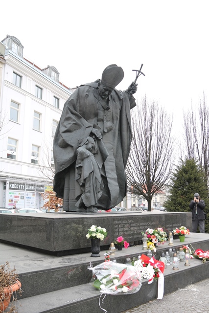 Pielgrzymkę zakończyła procesja pod figurę św. Jana Pawła II, gdzie złożono kwiaty i odśpiewano Barkę.