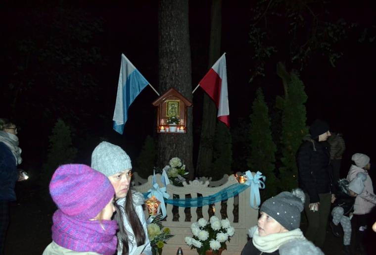 Następnie rozpoczęła się modlitwa różańcowa. Odmawialiśmy tajemnice światła. Ksiądz zachęcił, by każdy przedstawił Matce Bożej swoją intencję. Wymienił ponadto trzy intencje wspólne, dziękczynienia za przodków, którzy ustawili tę kapliczkę, za wszystkich, którzy zaangażowali się w jej odnowienie oraz za wszystkie te sprawy zebranych, które nie pozwalają nam jeszcze do końca zaufać Bogu. Podkreślił znaczenie i moc modlitwy wspólnotowej.