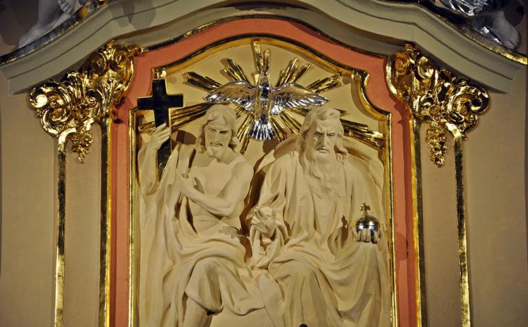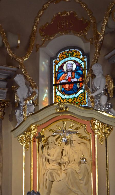 Po zakończonej Mszy Świętej, przy wystawionym Najświętszym Sakramencie zostało odprawione nabożeństwo ku czci Trójcy Świętej. Rozpoczęła je modlitwa nowennowa. To drugi miesiąc naszego trwania na Nowennie do Trójcy Świętej. Następnie odmówiona została Koronka. Ku niebu wraz z wonią kadzidła popłynęło wołanie: „Święty, Święty, Święty Pan Bóg zastępów. Pełne są niebiosa i ziemia chwały Twojej” na uwielbienie Trójcy Świętej, Ojca, Syn, Ducha Świętego. Była także okazja do tego, by w ciszy swego serca wypowiedzieć dziękczynienie. Po Koronce do Trójcy Przenajświętszej odmówiliśmy litanię. Błogosławieństwo Najświętszym Sakramentem zakończyło nabożeństwo. O zbliżających się obchodach przypomina nam baner umieszczony nad bramą wejściową do świątyni.