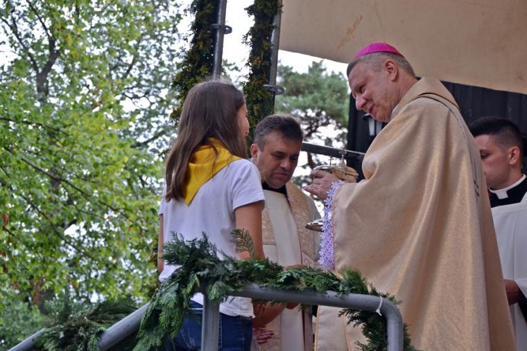 Podczas uroczystej sumy homilię wygłosił ks. bp Wiesław Szlachetka. Na początku ksiądz biskup skierował słowa powitania do ks. kustosz, przedstawicieli władz, lekarzy weterynarii, parafian i pielgrzymów. Ksiądz biskup podkreślił, że przybyliśmy na to Mikstackie Wzgórze, by prosić świętego Rocha o wstawiennictwo i uczyć się od niego miłości do Boga i bliźnich oraz szacunku dla wszystkich stworzeń. Hierarcha zachęcał zgromadzonych do skorzystania z daru odpustu.
