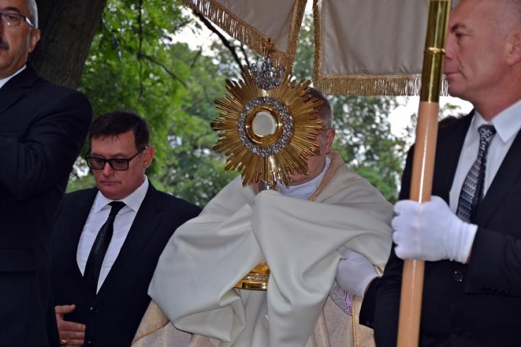 Po mszy świętej Ksiądz Biskup odczytał litanię do św. Rocha. Następnie procesja z Najświętszym Sakramentem przeszła cmentarnymi alejami. Błogosławieństwo Najświętszym Sakramentem zakończyło uroczystą sumę odpustową. Zgodnie z tradycją po Mszy św. wierni zabierali do domów małe chlebki, by podzielić się nimi z bliskimi. Przy rozdawaniu chlebków pomagali uczestnicy spotkań w Szkole św. Rocha oraz dziewczęta z Eucharystycznego Ruchu Młodych.