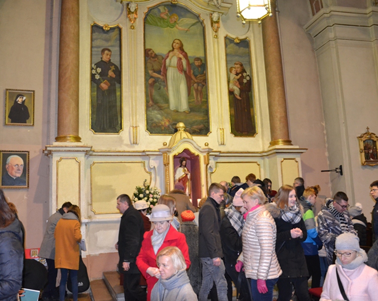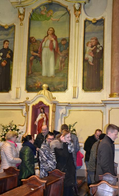 Kończąc zwrócił się ze szczególną prośbą do św. Agaty. Kilka dni temu trzech młodych mężczyzn z naszej parafii zginęło w wypadku samochodowym. Prośba była związana z tym tragicznym wydarzeniem. Ks. prałat Kazimierz prosił, by św. Agata wyprosiła młodym ludziom u Boga miłosierdzie, radość wieczną, a dla wszystkich opłakujących ich śmierć była umocnieniem w tym doświadczeniu, by pomogła przyjąć im wolę Bożą, chociaż jest ona tak trudna. Wiele ważnych słów padło podczas tej homilii. Warto do nich wrócić, bo refleksja nad nimi pozwoli na zmianę życia. A przecież był to odpustowy czas, czas szczególnych łask, ale i przemiany życia. Wraz z nami modliła się wspólnota TACY SAMI, uczestnicy wczasorekolekcji w Wojkowie, którzy po Eucharystii przezywali swoje spotkanie świąteczno- karnawałowe.