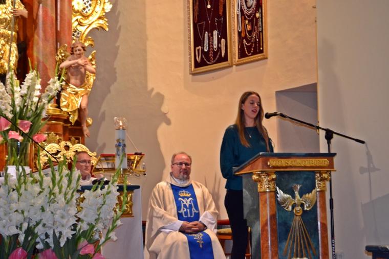 Ks. Piotr zachęcał zebranych, by postawili sobie pytanie o to co uczyniliśmy ze swoim chrztem, bo jak dodał jest to pytanie o naszą postawę życiową. Kończąc kaznodzieja powiedział: „My dzisiaj tutaj obecni patrzący na oblicze naszej Pani Kotłowskiej w Jej szczególnym cudownym wizerunku wołamy z wielką mocą Duchu Święty przyjdź napełnij nas swoją mocą. Uczyń nas Jej świadkami . Com przyrzekł Bogu przy chrzcie raz... Amen” .