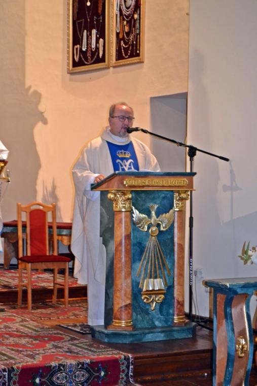Rozpoczynając homilię ks. Piotr przywołał słowa św. Jana Pawła II wypowiedziane podczas pierwszej Jego pielgrzymki do Polski „ Musicie być mocni tą mocą, którą daje wiara”. Kontynuując podkreślił, że wszyscy potrzebujemy duchowego umocnienia. To u Chrystusa, zwłaszcza we współczesnym świecie musimy szukać umocnienia i siły. Imponują nam często ludzie, którym nikt niczego nie narzuca, nie stawia barier co wolno, a czego nie. Kaznodzieja podkreślił, że długo tęskniliśmy za wolnością. Ks. Piotr przypominając czas, gdy Polska wchodziła do Unii Europejskiej, zaakcentował, że sądzono, że będzie to szansa na wprowadzenie wartości chrześcijańskich do innych krajów, niestety odwróciły się one od chrześcijaństwa. Uchwala się prawo sprzeczne z chrześcijaństwem, promuje związki homoseksualne, w wielu krajach Europy Zachodniej zalegalizowana jest eutanazja. Dodał, że wartości płynące z Zachodu uderzają w rodzinę. Kaznodzieja zwrócił uwagę, że proces dechrystianizacji dotyczy przestrzeni publicznej. Przypomniał, że u progu pontyfikatu Papież Jan Paweł II wołał: Otwórzcie drzwi Chrystusowi. Podkreślił, że życie człowieka nie może przynosić dobrych owoców jeśli nie jest zakorzenione w Chrystusie. Kontynuując rozważanie ojciec rekolekcjonista opowiedział o cudzie Eucharystycznym w Sokółce.