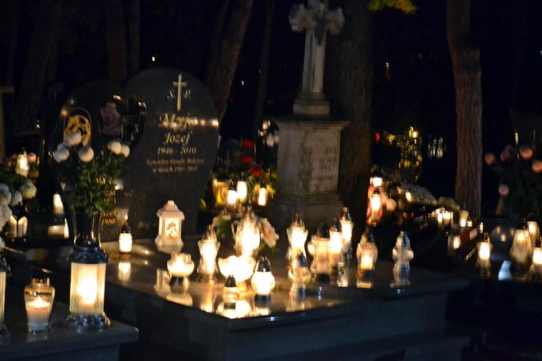 Tak jak podczas każdej Eucharystii Pan zastawił dla nas stół, wielu skorzystało z zaproszenia i przyjęło Komunię Świętą zapewne ofiarując ją za swoich bliskich zmarłych. Po końcowym błogosławieństwie odbyła się procesja z modlitwami za zmarłych. Modlitwie przewodniczył ks. kan. Krzysztof Ordziniak. Przy pierwszej stacji modliliśmy się za zmarłych biskupów, kapłanów, diakonów, braci i siostry zakonne. W sposób szczególny polecaliśmy kapłanów, którzy posługiwali w naszej wspólnocie parafialnej. Druga stacja była miejscem modlitwy za zmarłych rodziców i przodków. Ważna jest pamięć o tych, którzy przekazali nam życie, wiarę, troszczyli się o przekaz tradycji. Przy trzeciej stacji polecaliśmy miłosierdziu Bożemu braci, siostry, dzieci, współmałżonków, krewnych, rodziców chrzestnych, wychowawców, dobrodziejów. To ważne w naszym życiu osoby, które zostały nam postawione na naszej drodze do nieba, ci od których doświadczyliśmy wiele dobra. Kolejna stacja stała się okazją do modlitwy za wszystkich zmarłych spoczywających na naszym cmentarzu, za poległych i ofiary wojen. Przy ostatniej stacji modlitwą objęliśmy wszystkich zmarłych, których wiarę znał jedynie Bóg i o których Kościół zawsze pamięta.