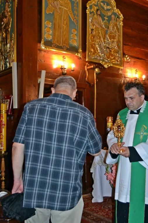 Rozpoczynając zaznaczył, że będzie mówił o błogosławieństwie, które sprawia nam wiele problemów, o ciszy. Zwrócił uwagę, że nie lubimy ciszy, nie potrafimy w niej żyć. Zagłuszamy ją włączonym nieustannie radiem, telewizorem , zwracając się do siebie podniesionym głosem. Uciekamy przed ciszą – kontynuował ks. Marcin- bo ona zmusza nas do myślenia. Jak podkreślił, nieumiejętność życia w ciszy jest efektem grzechu. Zaakcentował, że we współczesnym świecie trudniej doświadczyć ciszy, coraz trudniej znaleźć miejsce na rozmowę z Bogiem. Celebrans podkreślił, że Jezus mówiąc o człowieku cichym, mówił o człowieku pokornym, takim który odpoczywa w Bogu, który udając się na spotkanie z Nim myśli tylko o tym , by oddawać Mu cześć. Jednocześnie ks. wikariusz dodał, że nie jest łatwo być błogosławionym cichym, bo w życiu doświadczamy różnych, nieraz bardzo trudnych sytuacji. Zachęcał jednak, byśmy ciągle próbowali, bo w chrześcijaństwie nie ma ideałów, idealny jest tylko Bóg, a my mamy do tego ideału dążyć. Podkreślił, że trzeba nieustannie szukać miejsca, gdzie dobrze się czujemy na modlitwie, gdzie panuje cisza, która dopuszcza do głosu mowę serca. Kaznodzieja zwrócił uwagę, że jest jeszcze jeden powód dla którego zagłuszamy ciszę, to nasze sumienie. Odzywa się ono właśnie najczęściej w ciszy. W błogosławieństwie mówiącym o ciszy jest zawarta obietnica, iż cisi posiądą ziemię. Ksiądz wikariusz wyjaśnił, że nie chodzi o tę ziemię, którą np. dziedziczymy, ale o nową ziemię, królestwo Boga, gdzie nie będzie już podziałów, ale przede wszystkim nie będzie grzechu. Kończąc ks. Marcin powiedział: Chciejmy słuchać błogosławieństw w naszym życiu, próbujmy iść ich śladami, a wówczas poczujemy jak blisko nas jest Bóg. Czy potrafimy żyć w ciszy, co musimy w swoim życiu zmienić, aby tak naprawdę usłyszeć słowa kierowane do nas przez Boga. Słowa zachęty do szukania miejsca na spotkanie z Bogiem usłyszeliśmy w ten sobotni wieczór w sanktuarium położonym na wzgórzu wśród starych drzew. To miejsce, jak podkreśla wielu je nawiedzających sprzyja refleksji, rozmowie z Bogiem.