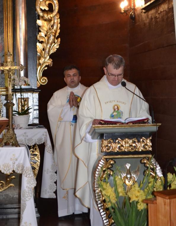 W słowie skierowanym do zebranych wiernych ks. kan. Piotr Staszak zatrzymał się nad słowami Jezusa: „ Błogosławieni, którzy wprowadzają pokój, albowiem oni będą nazwani synami Bożymi. Rozpoczynając rozważanie kaznodzieja podkreślił, że błogosławieństwa odgrywają ważna rolę w życiu duchowym każdego człowieka. Zaznaczył, że Bóg pragnie kontaktu z człowiekiem. Zwrócił uwagę, że Jezus otworzy dla nas swe Boskie Serce jednak wiele osób postrzega Go jedynie jako Kogoś odległego, poddającego nieustannie ocenie nasze uczynki. Nawiązując do błogosławieństw podkreślił znaczenie pokoju w życiu każdego człowieka. Zwrócił naszą uwagę na fakt, że gdy wokół Jezusa zebrały się tłumy, On wszedł na Górę. Zaakcentował, że z perspektywy góry dostrzegalne jest to, czego nie widzą stojący u jej podnóża. Kontynuując podkreślił, że z perspektywy Góry Jezus widział różne życiowe drogi człowieka. Dostrzegał radości i trudności, ale sam także ich doświadczał. Ponadto zwrócił uwagę, że Jezus jest tym, który wnosi pokój do naszego życia, ten pokój który jest nam niezbędny, pokój serca. Jednocześnie dodał, że w każdym człowieku jest źródło dobroci i piękna, a błogosławieństwa są potrzebne dla naszej duszy. Ks. kan. Piotr przywołał przykłady Świętych, wśród nich także św. Rocha, którzy przyjęli Boże błogosławieństwo, a w swoim życiu kroczyli drogą błogosławieństw. Podkreślił, że dzięki mocy Bożego błogosławieństwa byli zdolni do czynienia wielkich rzeczy w życiu. Jednocześnie dodał, że wiele osób nigdy nie usłyszało słów błogosławieństwa, a człowiek by właściwie mógł funkcjonować potrzebuje słów akceptacji, uznania, słów błogosławieństwa. Jednocześnie kaznodzieja zachęcał zebranych, by byli blisko Jezusa i świadczyli o nim nie tylko słowami, ale przede wszystkim czynami. Kończąc rozważanie ks. kan. Piotr powiedział:” Chrześcijanin, każdy i każda z nas ma być jak lampa, jak latarnia morska, która w mroku życia, ale przede wszystkim w mroku śmierci wskaże innym ludziom często zagubionym, wejście do nieba, by tam usłyszeć już osobiście od Jezusa: byłaś, byłeś błogosławiony, jesteś błogosławiony, jesteś błogosławiona, szczęśliwy szczęśliwa, bo czyniłaś, czyniłeś pokój.Zapewne wielu z nas swoim słowem ks. kan. Piotr pobudził do refleksji, do postawienia sobie pytania, czy jestem człowiekiem pokoju, czy wnoszę pokój w środowiska w których żyję? A wreszcie, czy w moim sercu panuje autentyczny Boży pokój?