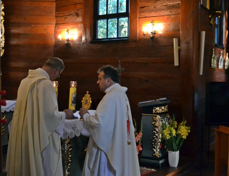 Po Eucharystii ks. kan. Krzysztof odczytał modlitwę pierwszego dnia Nowenny do Świętego Rocha, a następnie prośby i podziękowania wypisane przez mikstackich parafian i wiernych nawiedzających sanktuarium. Potem odmówiliśmy Litanię do Świętego Rocha. W mikstackim sanktuarium znajdują się relikwie św. Rocha. Po zakończonej Nowennie wielu podchodziło, by oddać im cześć.