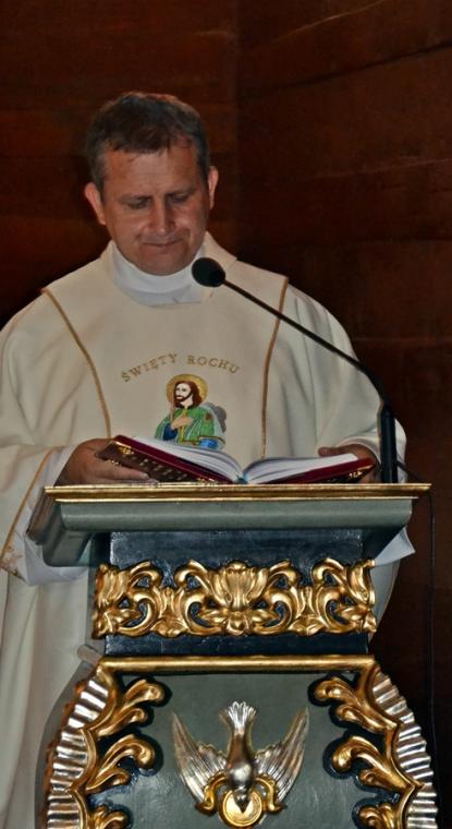 Na początku mszy świętej ks. kan. Krzysztof, kustosz sanktuarium przywołał słowa z pieśni „ Wielce kochany, w Bogu Rochu święty” i zaznaczył, że ponieważ jest On naszym przemożnym Patronem więc, by przygotować się do uroczystości odpustowych ku Jego czci rozpoczynamy nowennę. Ksiądz kan. Krzysztof skierował słowa podziękowania do księdza Sebastiana za to, że przyjął jego zaproszenie do duchowego przygotowania wiernych do szczególnego odpustowego czasu. Rozpoczynając konferencję ks. rekolekcjonista nawiązując do czytań zwrócił uwagę, że widzimy w nich z jednej strony ludzi deklarujących wiarę, ale jednocześnie szemrali przeciwko Bogu. Z kolei w Ewangelii mamy obraz kobiety kananejskiej, osoby niewierzącej, na wielkość wiary której zwraca uwagę sam Jezus. Kapłan zwrócił uwagę, że słowo Boże ma nas pobudzać do refleksji, do rachunku sumienia. W dalszej części konferencji ks. Sebastian wyjaśnił znaczenie słowa chrześcijanin. Podkreślił, że w języku polskim pochodzi od słowa chrzest, zaś w języku greckim znaczy chrystusowy. Zwrócił uwagę, że chrystusowy to ten, który należy do Chrystusa. Zaakcentował, że powinniśmy sobie stawiać pytanie, czy należę do Chrystusa i jak to przekłada się na naszą codzienność. „Chrzest -podkreślił kapłan- jest punktem wyjścia, bo chrzest włącza nas w wiarę. Słowo chrzest w języku greckim chrzcić- dosłownie tłumacząc znaczy zanurzać. Kiedy Pan Jezus posyła swoich uczniów to mówi: Idźcie i głoście Ewangelię i zanurzajcie wszystkich w imię Ojca i Syna i Ducha Świętego”. Kontynuując kaznodzieja podkreślił, że jesteśmy na tyle chrześcijanami na ile jesteśmy zanurzeni w Bogu. Łaska chrztu ma nas nieustannie przenikać wszystko co składa się na nasze życie. Nawiązując do mitu o Achillesie wyjaśnił, że jeśli coś nie będzie zanurzone w Bogu będzie miejscem cierpienia, duchowej śmierci. Ksiądz rekolekcjonista zwrócił uwagę, że Jezus przychodząc na ziemię zanurzył się w naszym człowieczeństwie. Jednocześnie zaprosił: zanurz się w moją paschę. Oznacza to życie przeniknięte Bogiem, Jego słowem. „Święty- kontynuował kapłan- to jest ten człowiek, który pozwala, aby Bóg przenikał jego życie. To jest człowiek zanurzony w Bogu”. Nawiązując do słów św. Pawła zachęcał byśmy zapuszczali korzenie we właściwym miejscu, bo tylko wtedy wydamy właściwe owoce.Ksiądz Sebastian przypomniał, że kiedyś ludzie gdy przyjmowali chrzest byli cali zanurzani w wodzie. Był to znak, że tak jak całkowicie kapłan zanurza człowieka w wodzie i nie ma na nim żadnego miejsca suchego tak ma zostać całkowicie zanurzony w Bogu, tak ma go całkowicie przenikać łaska Boża. Jednocześnie ksiądz rekolekcjonista zaakcentował słowo chcieli zwracając uwagę, że takie całkowite zanurzenie w Bogu jest dla człowieka trudne, gdyż jest w nas dużo niewiary, lęku, grzechu. Kontynuując zapytał: po co żyjemy? Kaznodzieja odpowiedział żyjemy po to, żeby uczyć się wiary, zaufania Panu. Bogu. Kapłan przyrównał życie człowieka do mieszkania, w którym otwieramy drzwi dla naszego gościa, który chce wejść. Na tę czynność potrzebujemy różnego czasu. Gdy te drzwi zostaną otwarte Bóg – gość może wejść do naszego życia. Kapłan kontynuował: „Zadanie zrobione, Bóg jest w naszym życiu, przychodzi, nas zbawi. Jesteśmy w niebie ze świętymi, z naszymi zmarłymi za których się modlimy. Nie ma już później potrzeby kontynuowania życia na ziemi. Osiągnęliśmy zbawienia, Bóg przyszedł”. Kapłan zachęcał do refleksji nad tym jak żyć, ale i pragnienia by te drzwi naszego życia były dla Boga otwarte. Ważne jest pragnienie obecności Boga w naszym życiu, pragnienie łaski Bożej, a wtedy możemy liczyć na to, że Bóg znajdzie drogę do człowieka. Kaznodzieja zachęcał zebranych w sanktuarium, by w ten pierwszy nowennowy dzień wzbudzili w sobie pragnienie zanurzenia się w Bogu, aby być chrześcijaninem, aby Bóg przenikał wszystko w naszym życiu. Zachęcał, byśmy wpuścić Pana Boga w te miejsca naszego życia, gdzie jest On jeszcze nieobecny. Pomóc nam w tym może orędownictwo św. Rocha. Kapłan podkreślił, że Bóg chce wejść w te zakamarki naszego życia, które są nieuporządkowane. Zaznaczył, że woda chrzcielna, która symbolizuje łaskę Bożą jest po to, by obmywać nas z brudu duchowego. Kończąc ks. Sebastian zachęcał: „ Punktem wyjścia musi być pragnienie, Panie Boże przyjdź, chcę się w Tobie zanurzyć, chcę być zanurzony całkowicie, by wszystko było przeniknięte Tobą. O to dzisiaj z sercem prostym, ale usilnie prośmy dzisiaj Pana Boga przez wstawiennictwo świętego Rocha, kiedy dzisiaj po mszy świętej będziemy rozpoczynać nowennę”.