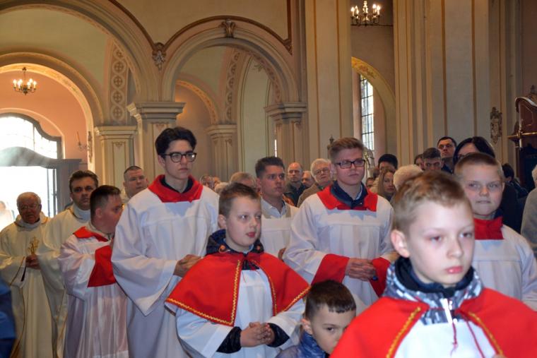 Homilię podczas Mszy Wieczerzy Pańskiej wygłosił ks. Marcin, który na początku ukazał jak wyglądały przygotowanie do tradycyjnej paschy żydowskiej. Zwrócił uwagę na szczególna troskę o baranka, którego następnie zabijano, bo potrzebna była krew do dopełnienia obrzędu paschy. Nawiązując do Ewangelii zwrócił uwagę, że Jezus spożył wieczerzą z uczniami przed paschą. Podkreślił, że Jezus swoją paschę odbędzie w Wielki Piątek. Kontynuując kaznodzieja zapytał: „ Czym zatem jest to co Jezus uczynił uczniom podczas wieczerzy”? Odpowiadając nawiązał do pierwszego cudu w Kanie Galilejskiej, gdzie puste stągwie, które Jezus kazał napełnić wodą, które zamienił w wino. Woda, tym razem w miednicy, pojawiła się i odgrywa ważną rolę podczas wieczerzy. Kapłan powiedział: „Skoro Jezus spożywa wieczerzę, którą wyprzedza Jego paschę i zamyka w znak, to co my czynimy po dzisiejszy dzień w Eucharystię tzn. że jest to tą sama woda, która zalała grzech Egiptu, kiedy Izraelici uciekali przez suche Morze Czerwone i to ta sama woda, którą Jezus zamienił w wino w Kanie Galilejskiej, to ta sama woda, i to też ta sama woda, która wypłynie z boku Jezusa, gdy Go zabijemy”. Kontynuując ks. Marcin wyjaśnił znaczenie gestu obmycia nóg. Zwracając uwagą na opór Szymona zaakcentował, że to ważny moment dla każdego z nas. Wymaga przyznania się do tego, że potrzebujemy obmycia. Dodał, że jest jeszcze jedna woda, woda Chrztu świętego, która zmywa nas z grzechu. Jednak nadal grzech jest w nas. Dopiero obmycie przez Chrystusa , którym jest Jego śmierć, uwalnia nas od grzechu. Kapłan zaapelował do zebranych: „ Pozwólcie dzisiaj obmyć wasze serca wodą, która stanie się Krwią Chrystusa przelaną za nas na krzyżu. Jezus dzisiaj wino z Kany Galilejskiej przemienił w swoją krew, ale to od naszego serca zależy za kim pójdziemy”. Kontynuując ks. Marcin podkreślił, że to od nas zależy za kim pójdziemy. Podkreślił, że jeśli pozwolimy, by nad naszymi sercami zapanował zły duch, to w naszym życiu nie będzie miejsca na gest obmycia nóg, oczyszczenia i przemianę naszych serc. Kapłan zachęcał zebranych, by zastanowili się co w naszym życiu wymaga przemiany, obmycia w krwi Chrystusa. Kończąc kaznodzieja powiedział: „Niech ta woda, która za chwilę popłynie na nowo oczyści nasze serca, by nie gościł tam strach, przed chęcią zmiany, by nie gościła tam niepewność, czy z Bogiem uda nam się naprawić nasze życie, ale by ta woda, która jest krwią Boga zmyła z nas to co zostawia w nas zły duch, byśmy mogli w końcu wrócić do Boga czystymi stopami naszych serc. Amen”.