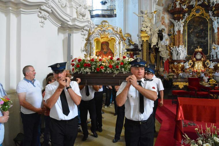 Na zakończenie Eucharystii Ksiądz Biskup poświęcił przyniesione przez wiernych bukiety ziół i kwiatów, po czym z bazyliki wyruszyła procesja z ikoną Matki Bożej Łaskawej.