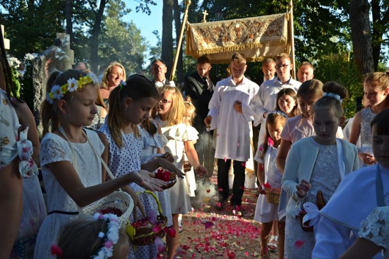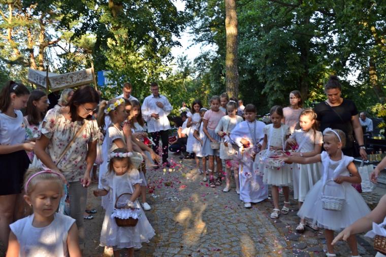 Po Mszy Świętej odbyło się wystawienie Najświętszego Sakramentu, odmówiliśmy Litanię do Serca Jezusowego. Następnie z Jezusem ukrytym pod postacią Chleba wyruszyliśmy alejkami cmentarnymi w procesji do czterech ołtarzu. Myślą przewodnią haseł, która znalazły się w tym roku na przygotowanych przez poszczególne rejony parafii była NIEDZIELA. Hasła skłaniały wiernych do spojrzenia na niedzielę w następujących aspektach: Niedziela dniem Kościoła, Niedziela dniem rodziny, Niedziela dniem wiary, Niedziela dniem człowieka. Procesję zakończyło błogosławieństwo Najświętszym Sakramentem na cztery strony świata. Następnie odbyło się poświęcenie wianków z ziół i kwiatów. To wyraz naszej wiary i zaufania Bogu. Przyniesione zostały pierwociny pól i łąk, by Bóg nam błogosławił, by nikomu nie zabrakło chleba powszedniego, bo tego będącego pokarmem dającym życie wieczne nigdy nie zabraknie… Obyśmy tylko chcieli się nim karmić… Zadziwiająca jest siła wiary i tradycji w naszej wspólnocie.